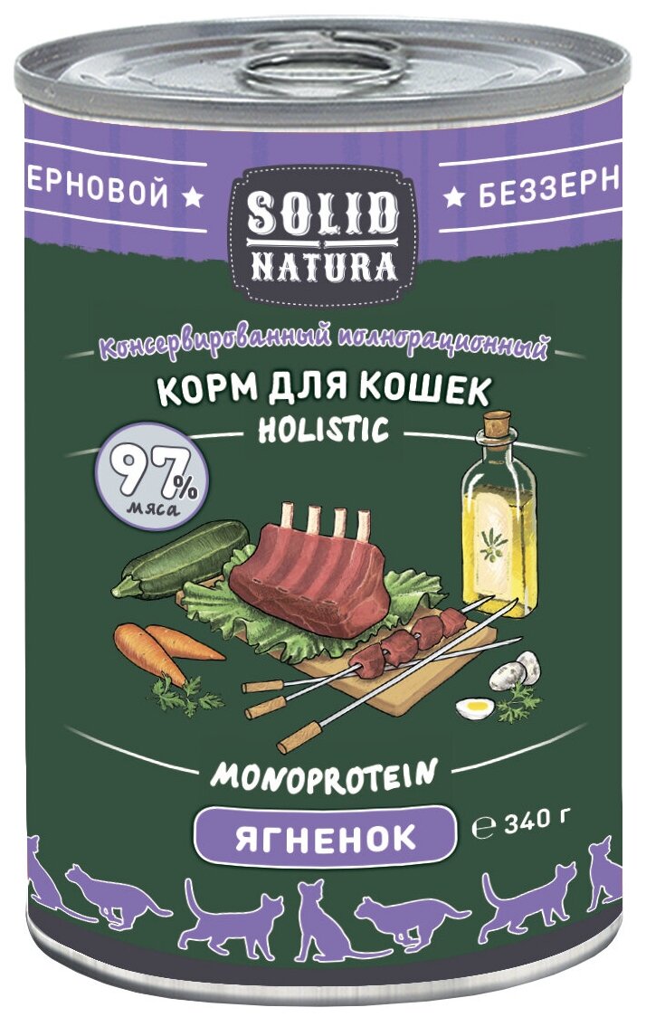 Корм влажный Solid Natura Holistic Ягнёнок для кошек, консервы, 340 гр