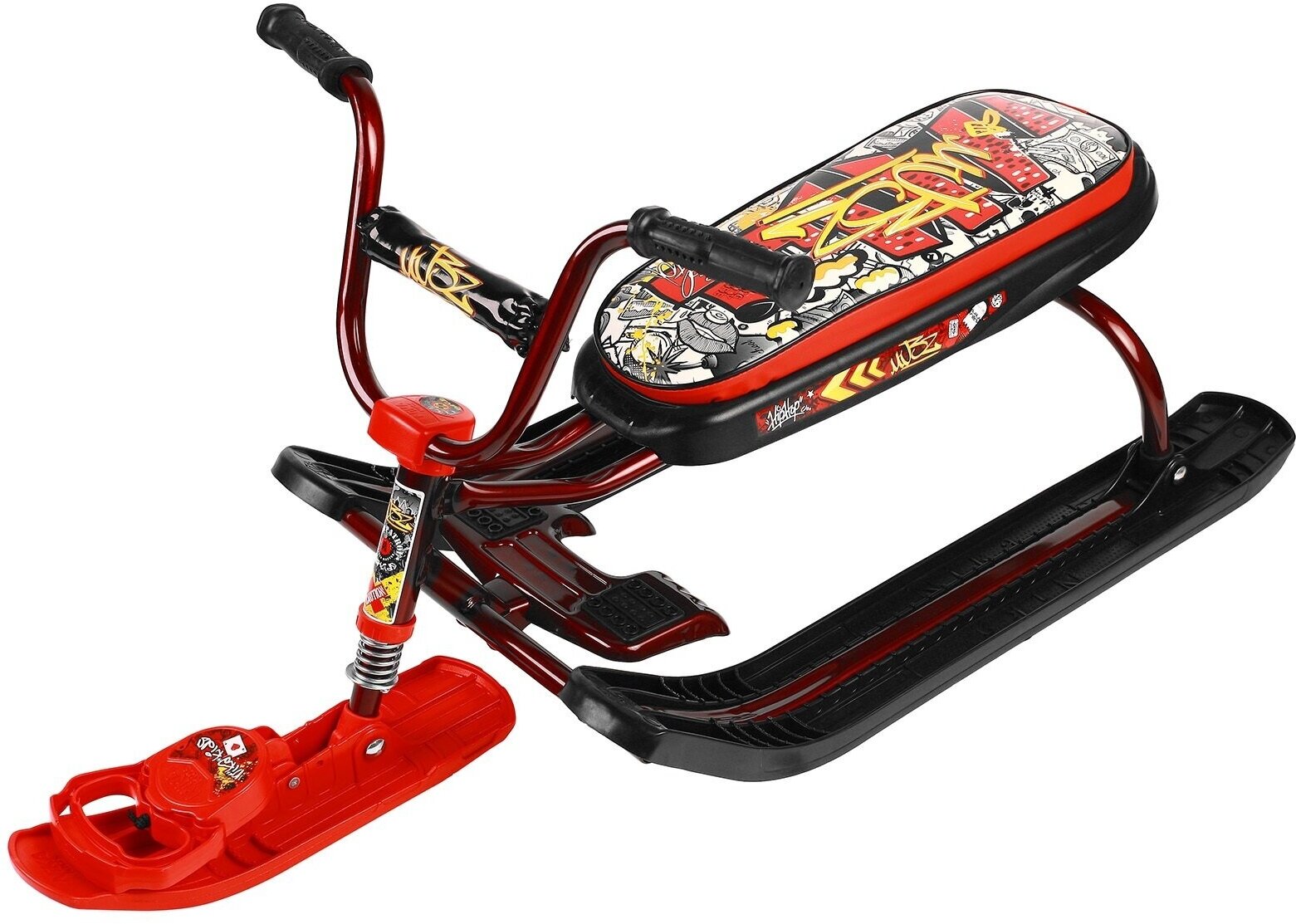 Снегокат детский Ника "Ника джамп", СНД1 граффити на красном, удлиненное сидение, велоруль, до 100 кг