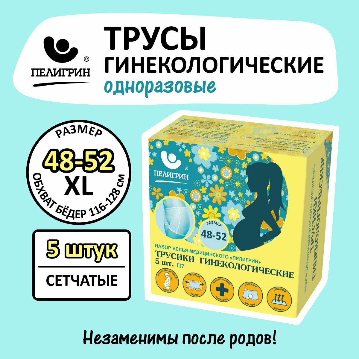 Трусы одноразовые гинекологические послеродовые Пелигрин р-р 42-46 М 5шт.