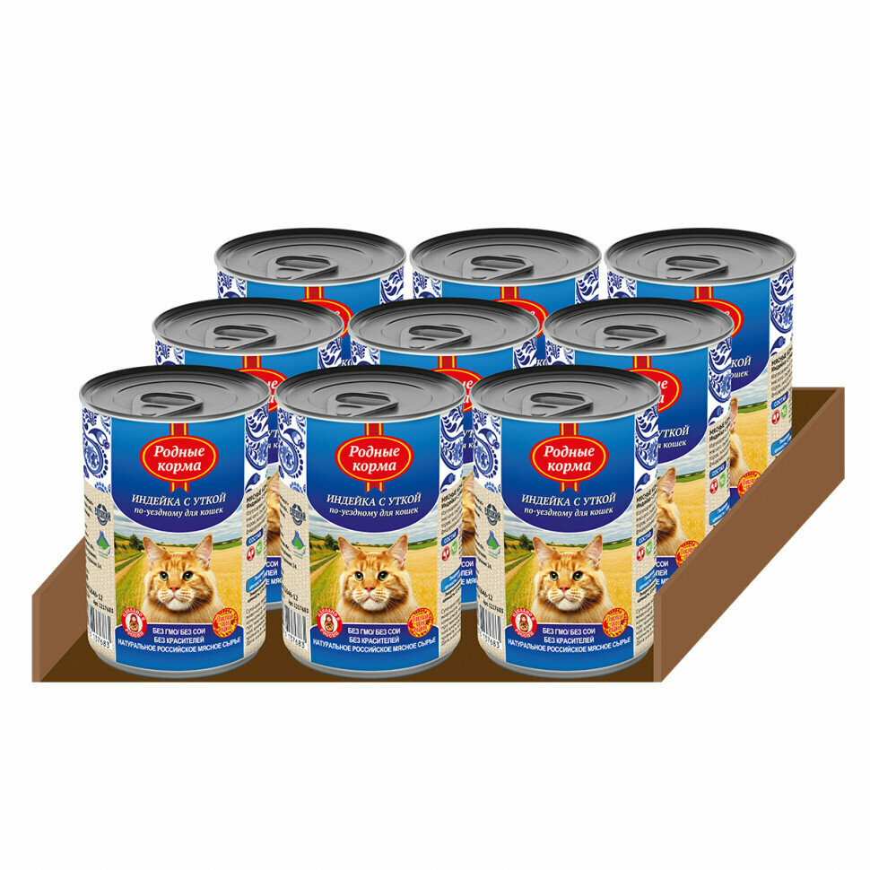 Родные Корма влажный корм для взрослых кошек всех пород, индейка с уткой по-уездному (9шт в уп) 410 гр