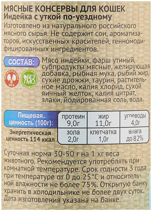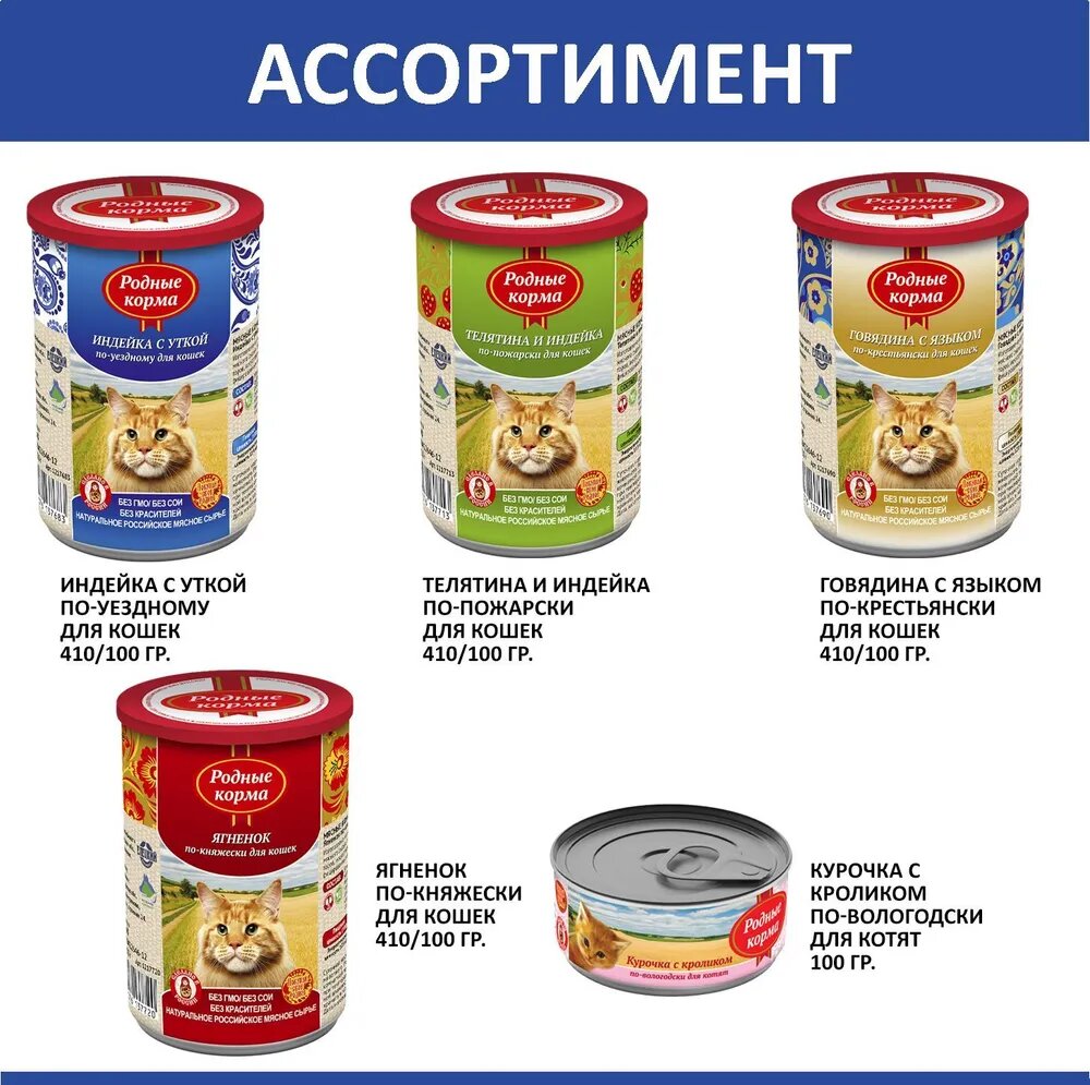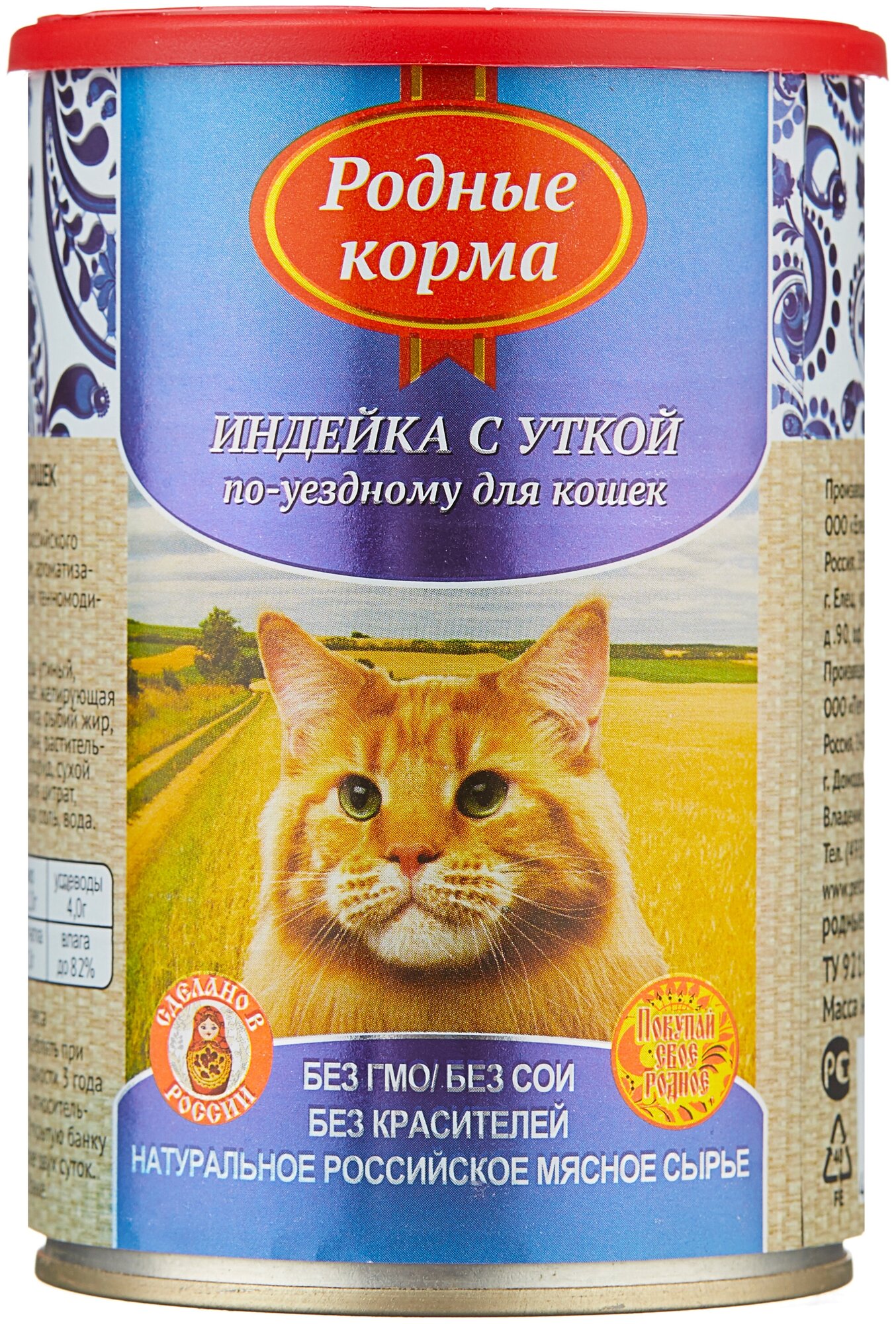 Родные корма Консервы для кошек индейка с уткой по-уездному 64558, 0,410 кг