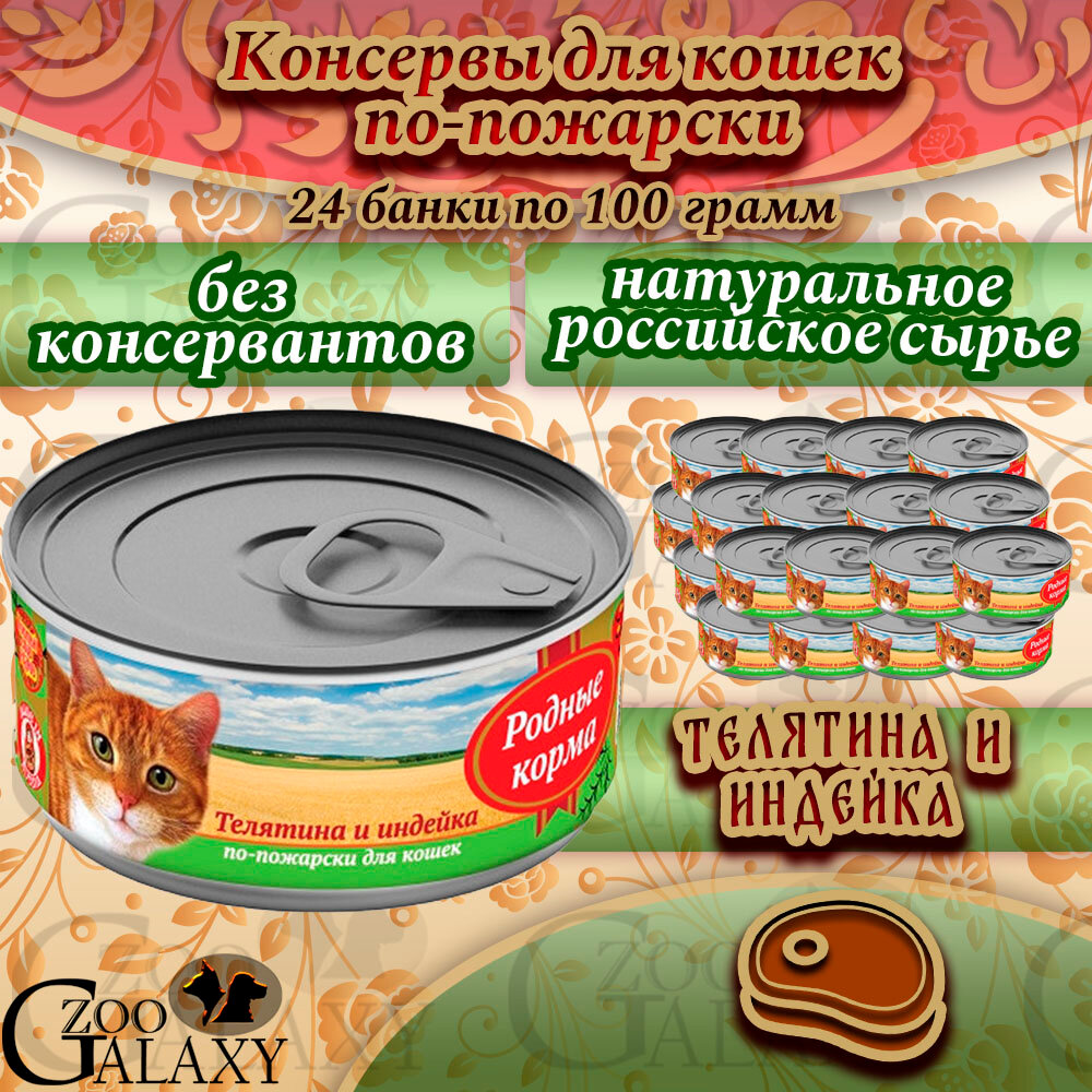 Родные корма Консервы для кошек телятина и индейка по-пожарски 24х100 г