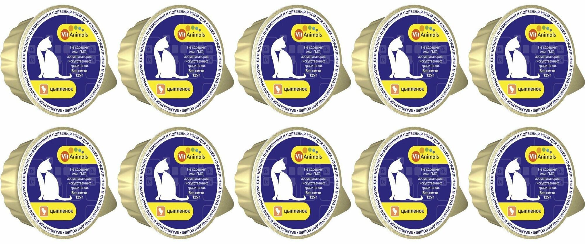 VitAnimals влажный корм для взрослых кошек с цыпленком, в ламистерах - 125 г х 10 шт