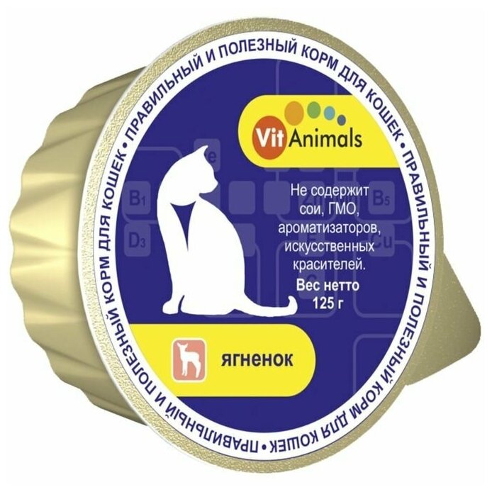 VitAnimals влажный корм для взрослых кошек всех пород, ягненок 125 гр (34 шт)