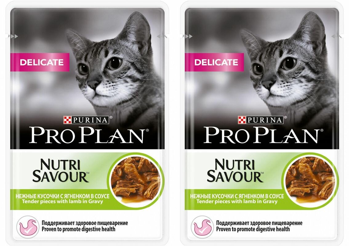 Purina Pro Plan (паучи) Паучи Кусочки в соусе для взрослых кошек с ягненком (Delicate) 1230565512457378 | Nutri Savour , 0,085 кг, 25103 (2 шт)