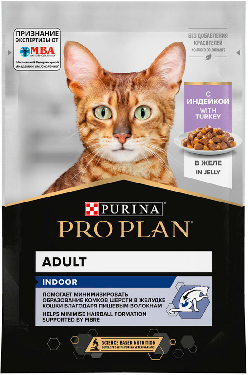 PRO PLAN INDOOR для взрослых кошек, живущих дома, с индейкой в желе пауч 85 гр х 26 шт