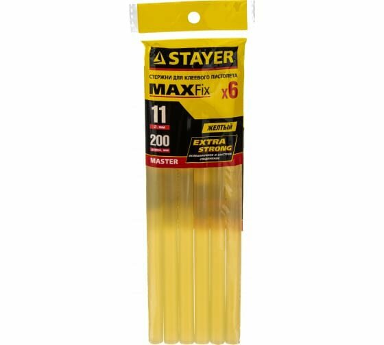 Купить Клеевые стержни STAYER Yellow желтые 11х200 мм 6 шт. 2-06821-D-S06 (2-06821-Y-S06)