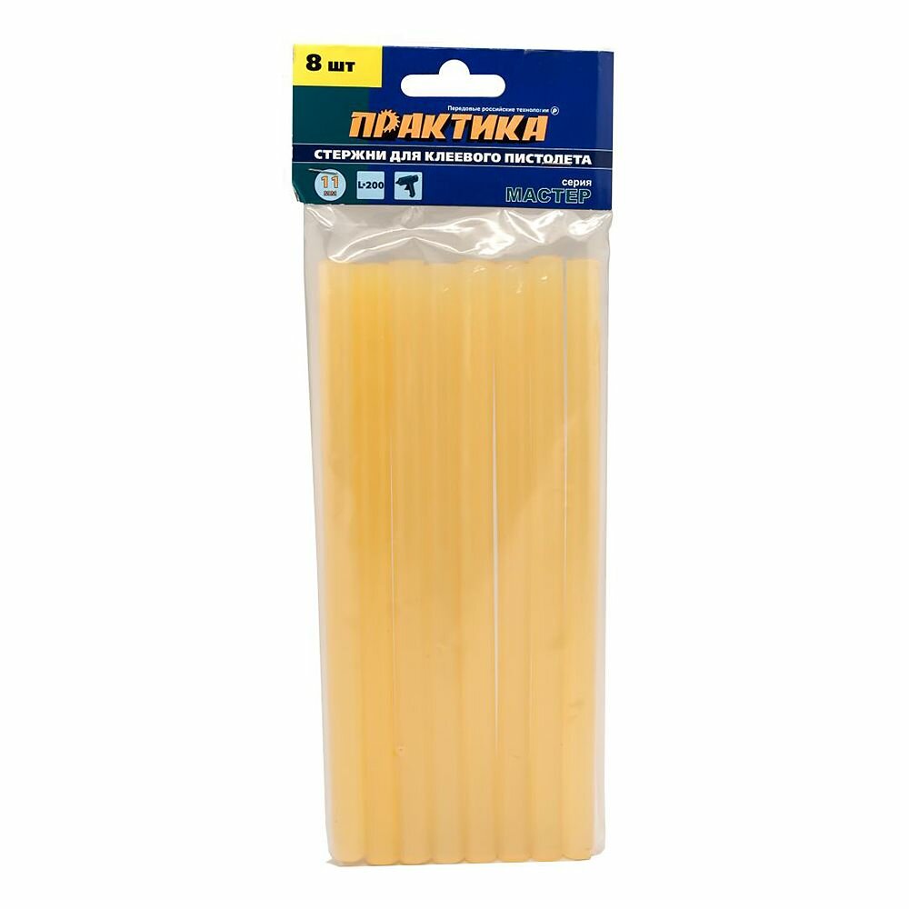 Стержни клеевые 11*200мм (желтый прозрачный, 8 штук) / ПРАКТИКА