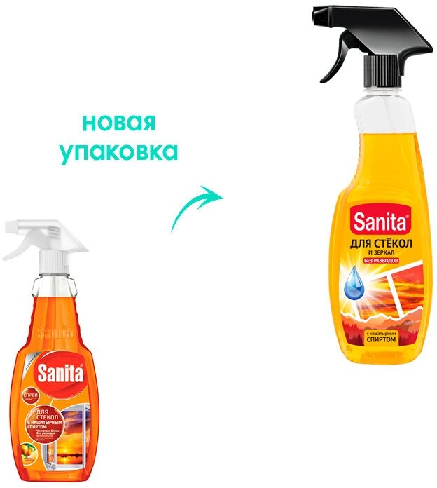 Купить Средство для мытья стекол и зеркал Sanita с нашатырным спиртом, флакон с распылителем, 500г (1968)