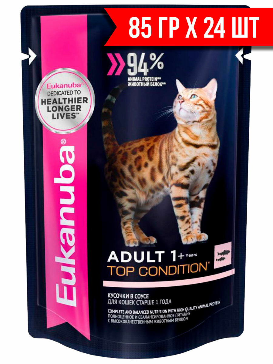 Eukanuba ADULT TOP CONDITION SALMON пауч влажный корм для взрослых кошек, лосось в соусе, 85 гр