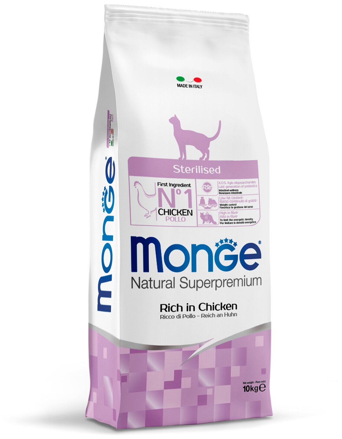 Сухой корм для стерилизованных кошек Monge Natural Superpremium, с курицей 10 кг