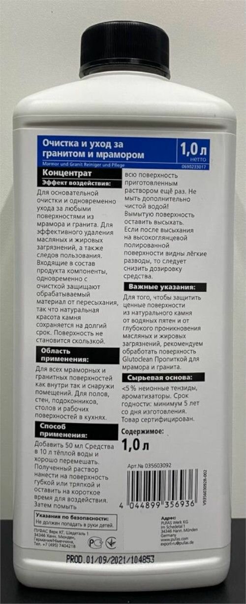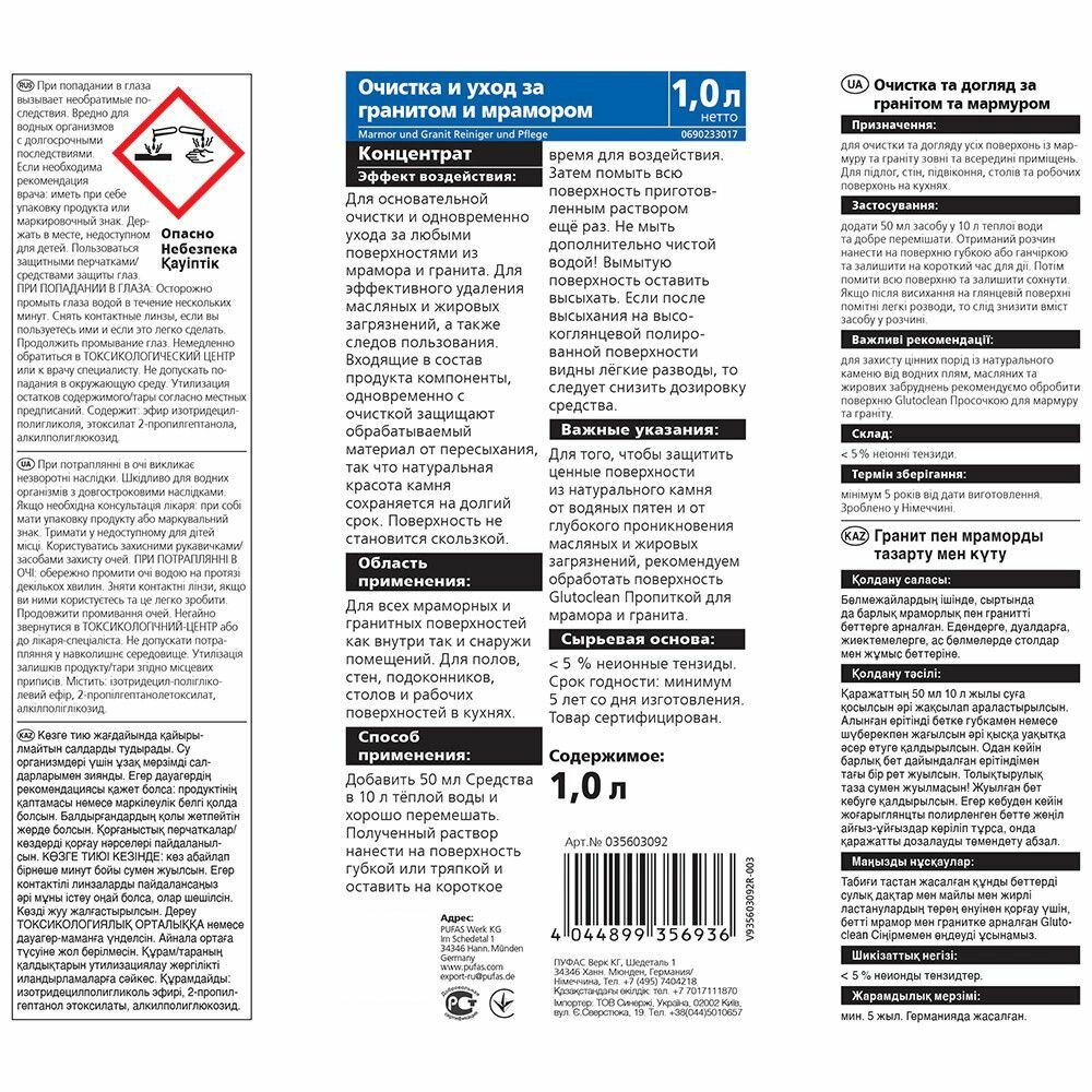 Очистка и уход за гранитом и мрамором, Pufas Glutoclean, 1 л. интересное: