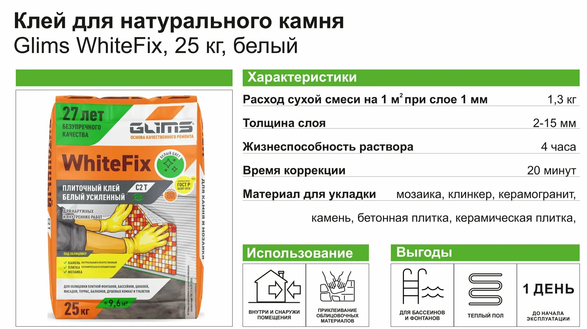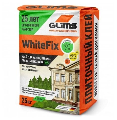 Клей для камня и плитки С2T Белый Glims WhiteFix 25 кг интересное: