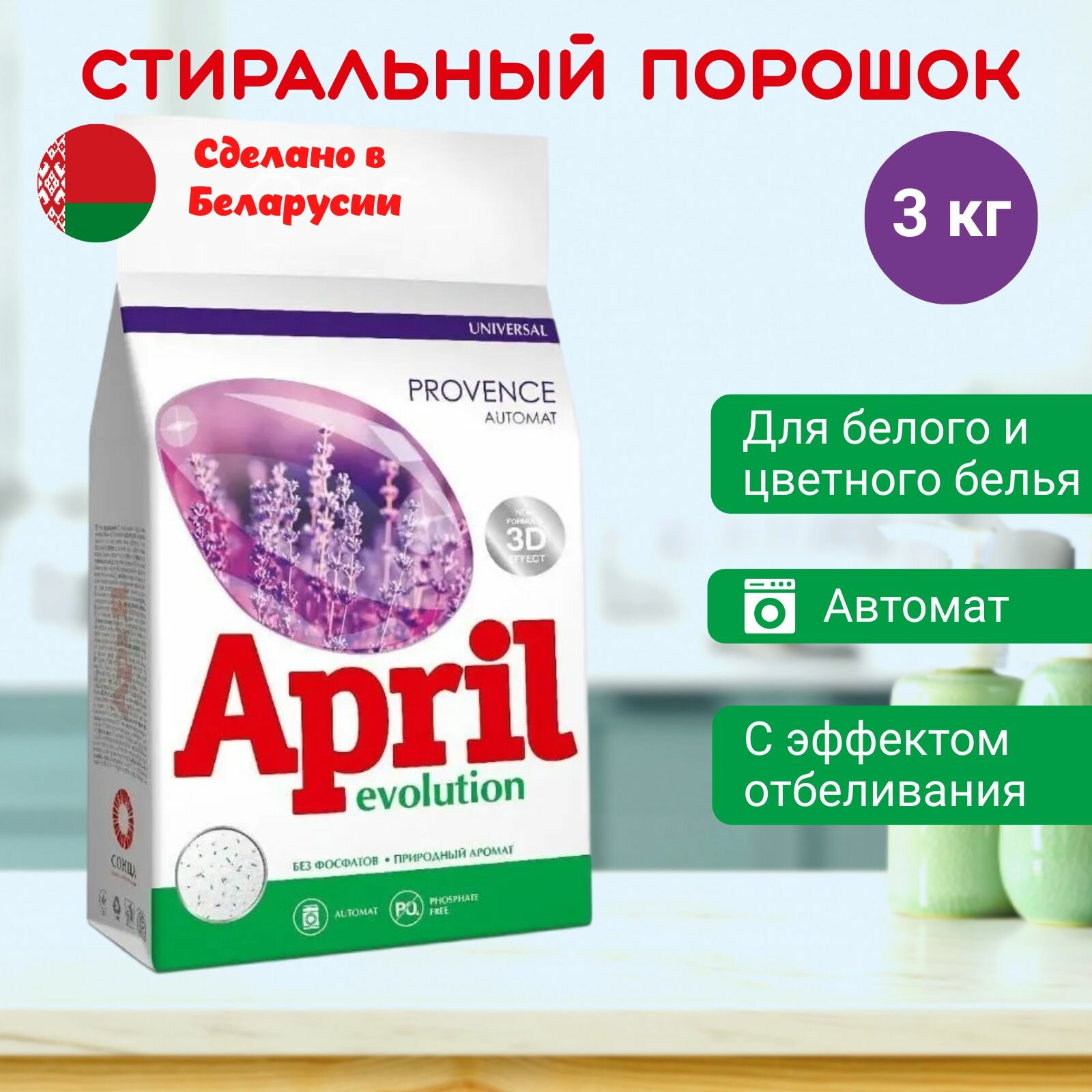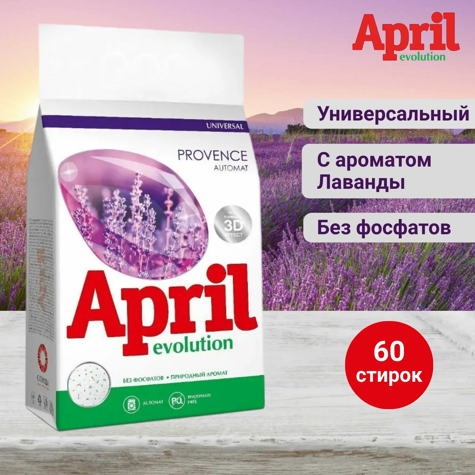 Стиральный порошок April Evolution 3 кг, Автомат, универсальный, Provenсe