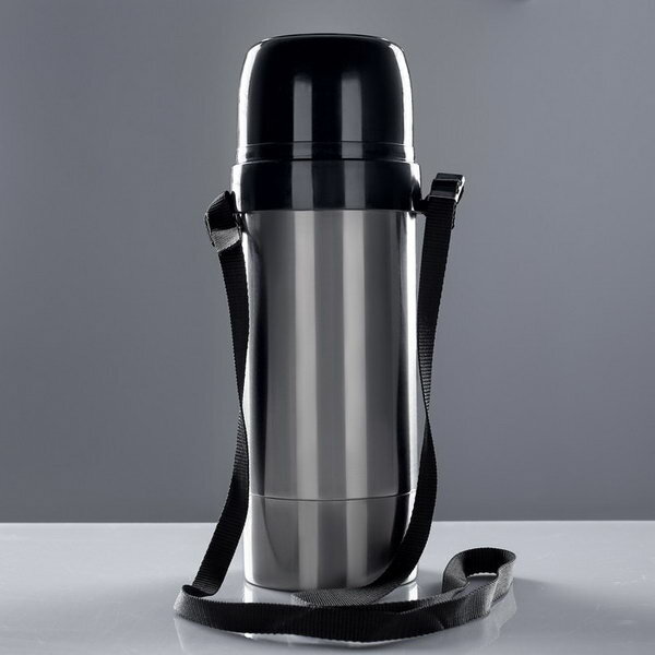 Термос Амет Дорожный DN 1с669 с узким горлом, 1.5 л, пробка без кнопки, ремень тканевый