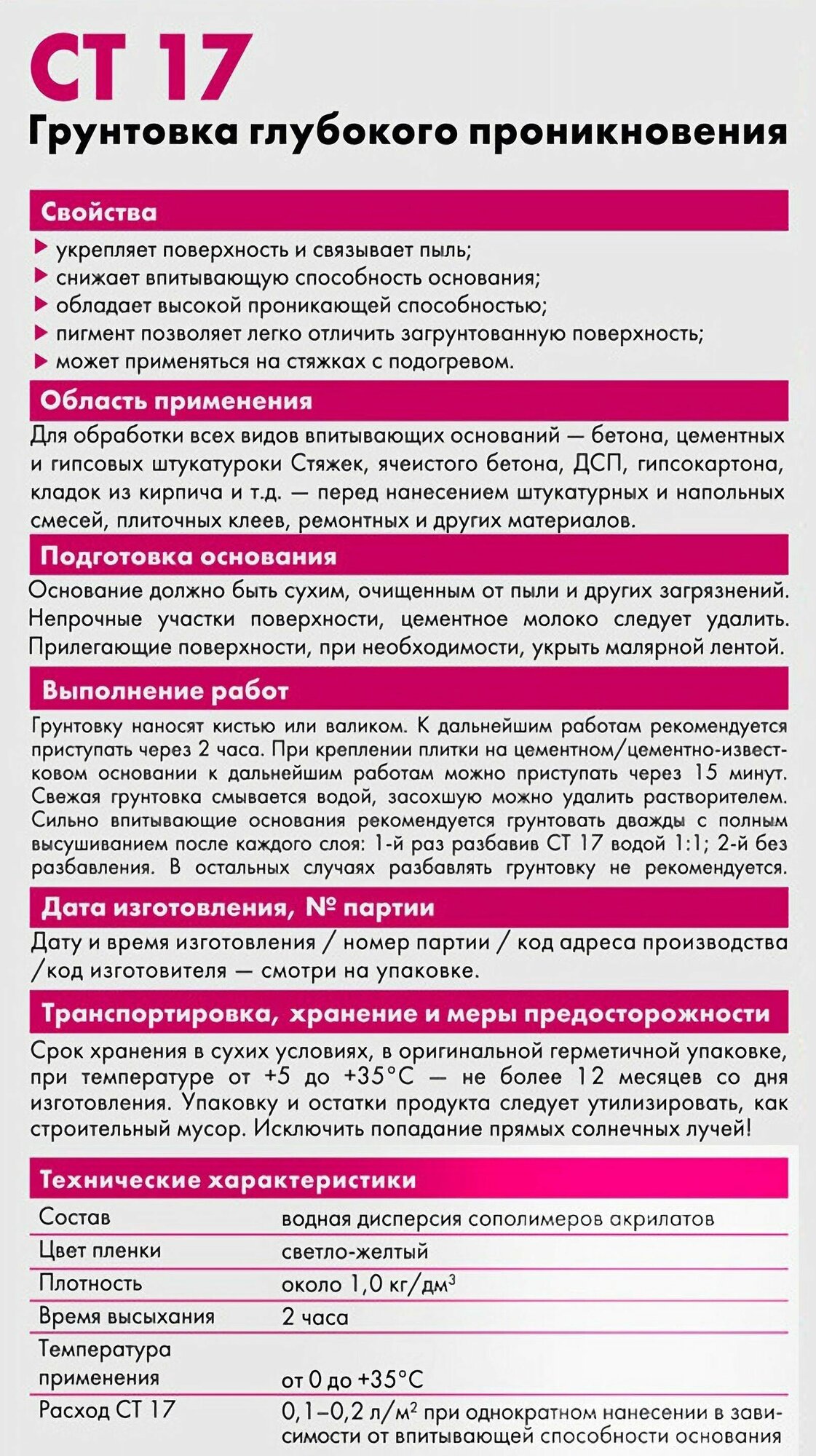 Ниже Вы можете прочитать отзывы на Грунтовка глубокого проникновения Ceresit CT17 Pro, 10л, ознакомится с подробными характеристиками, посмотреть интересные обзоры и фотографии на Грунтовка глубокого проникновения Ceresit CT17 Pro, 10л.