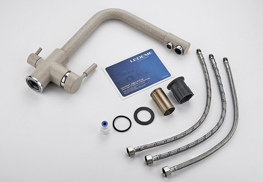 Смеситель для кухни со встроенным краном под фильтр питьевой воды Ledeme R L4055K-3 бежевый