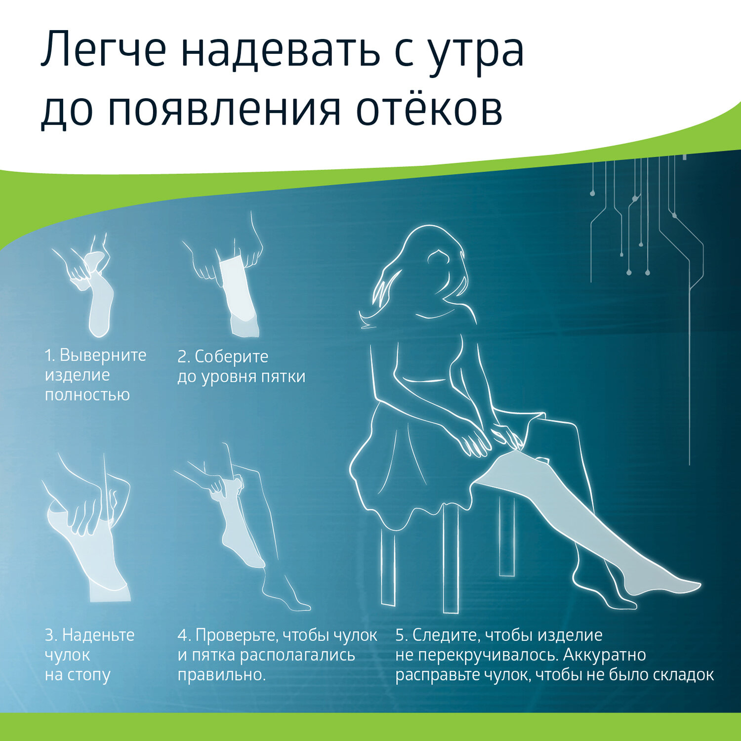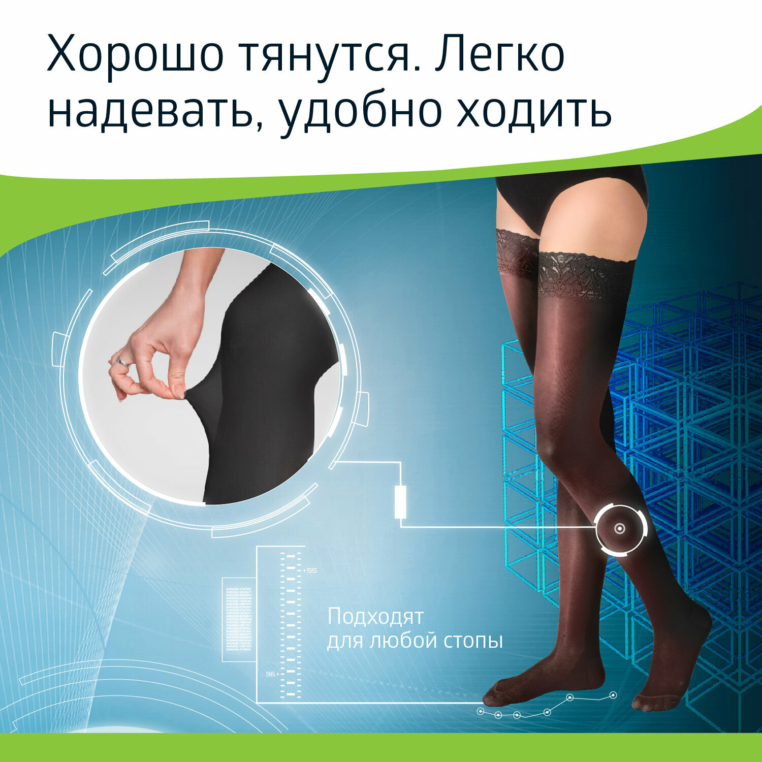 | Отзыв: | Резинка хорошая, не сползают, ноги хорошо себя чувствуют в течение всего дня, нет отеков, болей.
