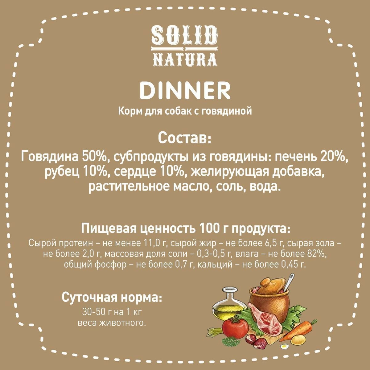 Влажный корм для собак, Solid Natura Dinner, говядина, упаковка 6 шт х 340 г