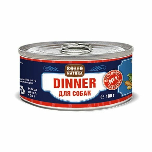 Solid Natura Dinner Говядина влажный корм для собак в жестяной банке 100 г х 24 шт