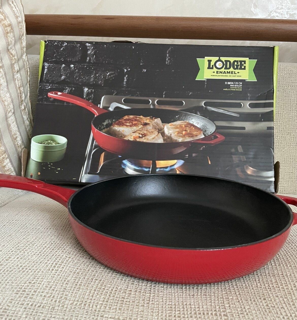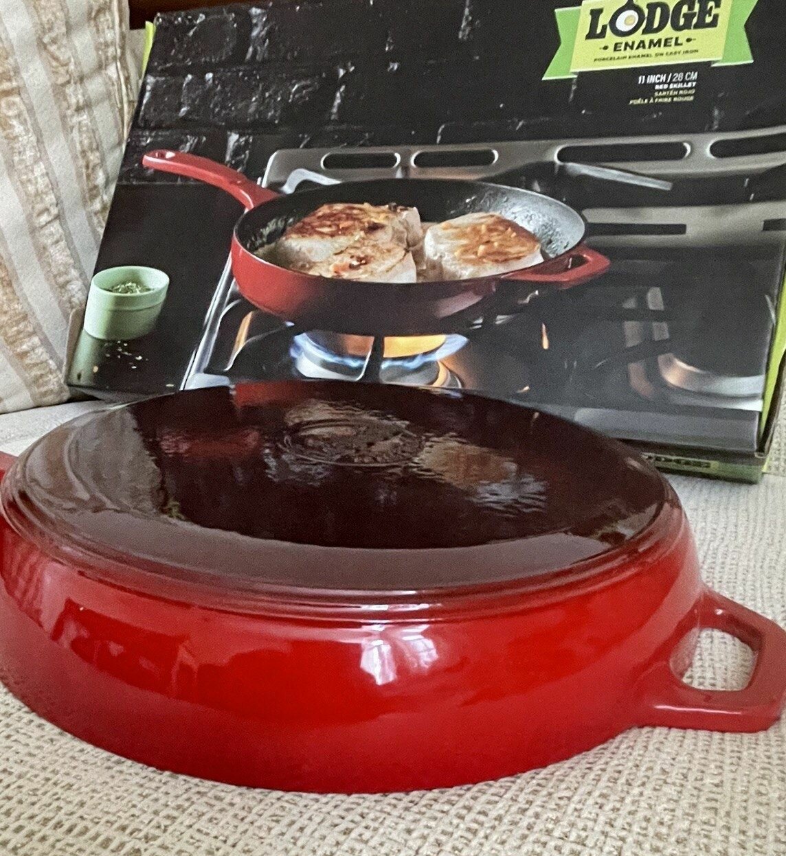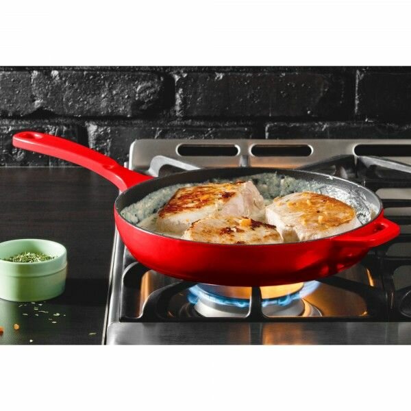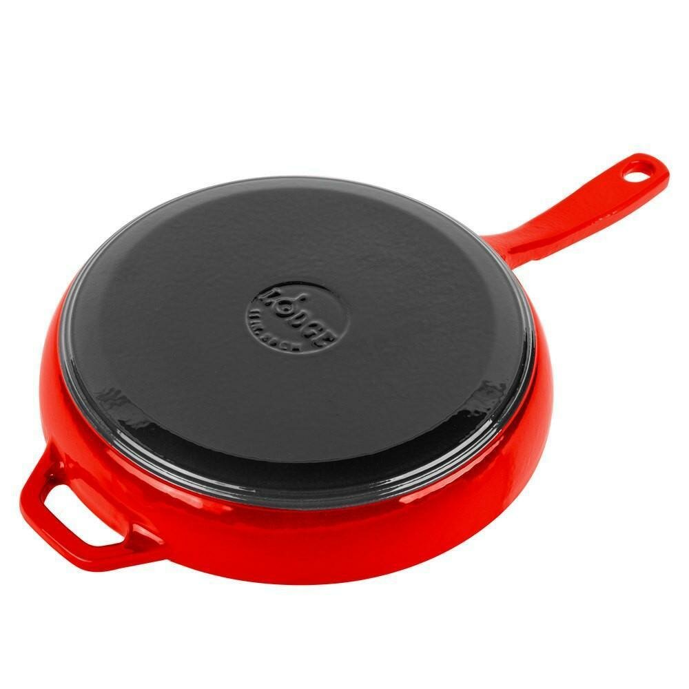 Сковорода чугунная круглая эмалированная 28 см с литой ручкой Lodge ENAMEL- EC11S43,красная, чугун, Lodge интересное: