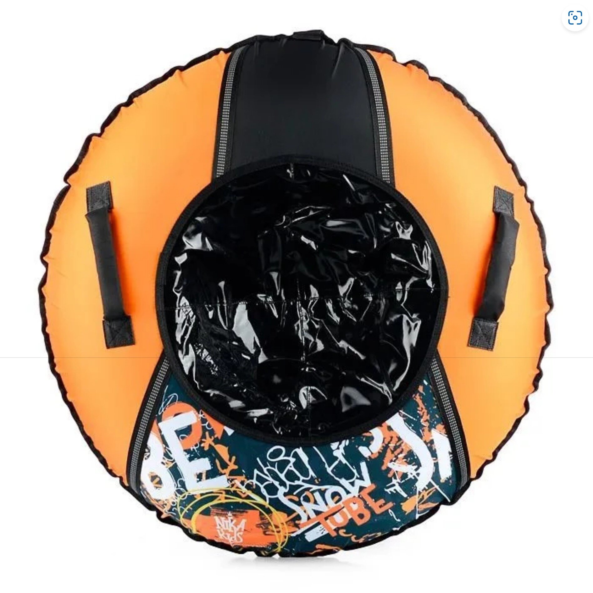 Ватрушка тюбинг 95 см НИКА ТБ1КР (Чехол 1050 мм.) Граффити черный/оранжевый с камерой / Надувные санки для детей и взрослых