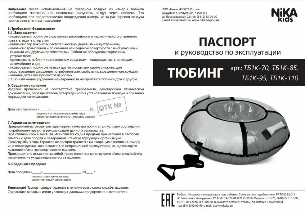| Отзыв: | Соблюдайте технику безопасности при катании с гор на тюбинге. |