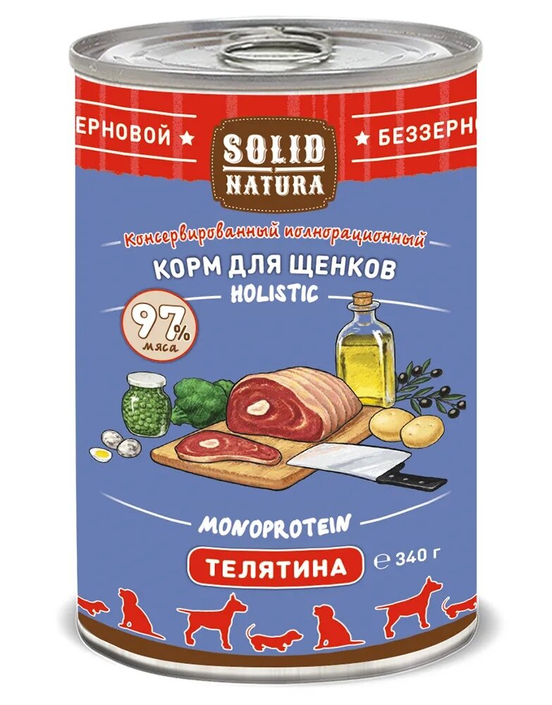 SOLID NATURA HOLISTIC монобелковые для щенков всех пород с телятиной банка (340 гр)