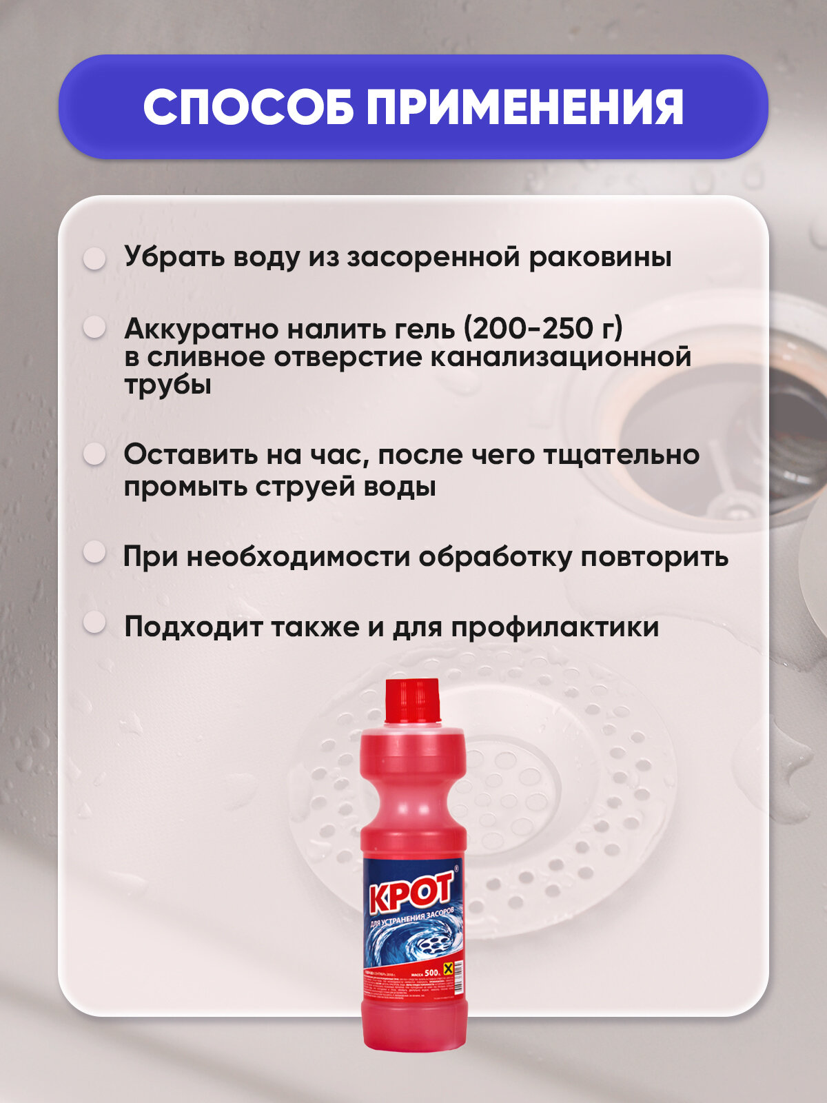 Крот "Для устранения засоров" 0,5 л, средство для прочистки труб, средство от засоров, средство от засора в трубах, прочистка труб, крот для труб