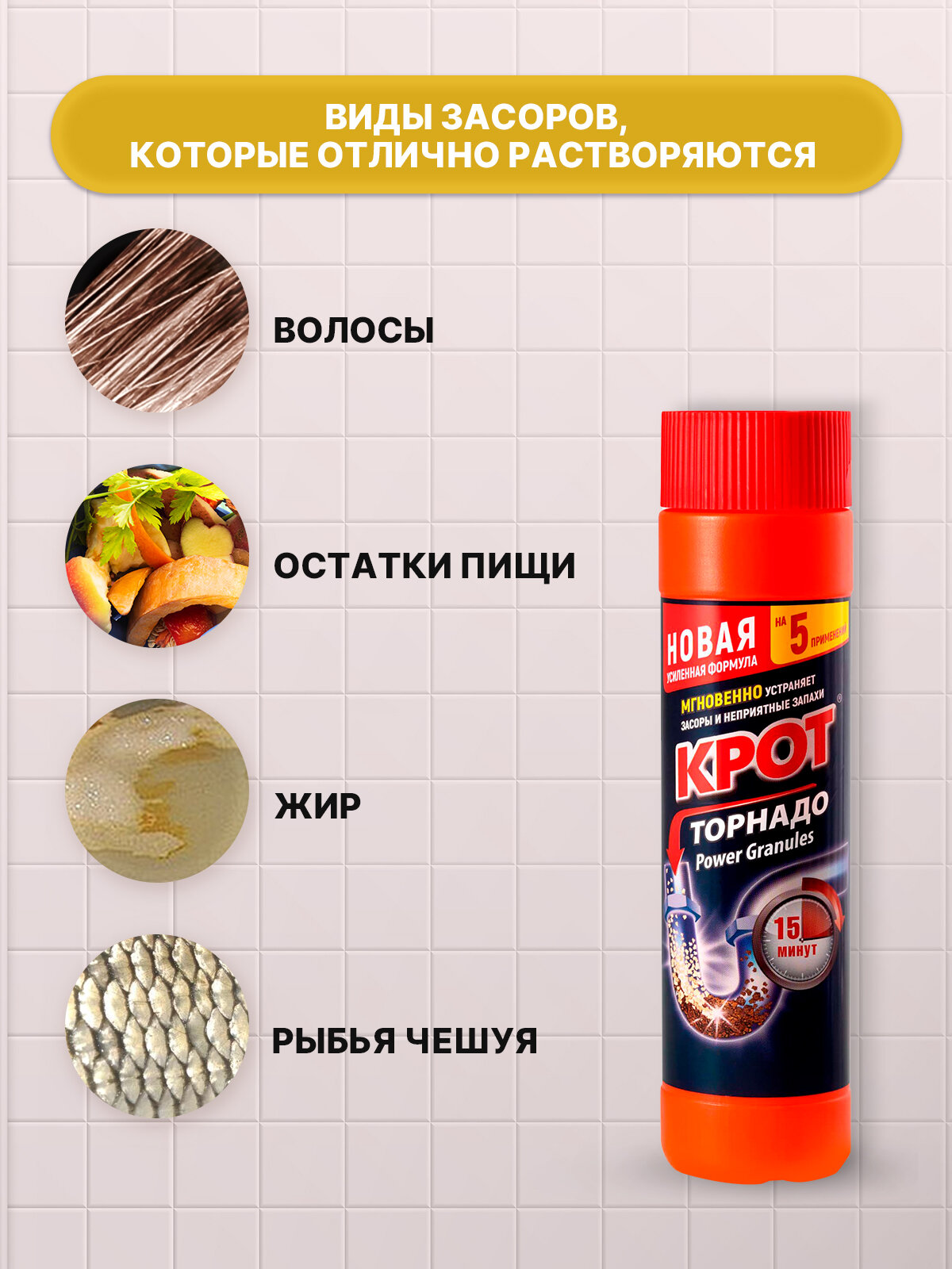 Средство от засоров Крот, Торнадо, гранулы, 90 г