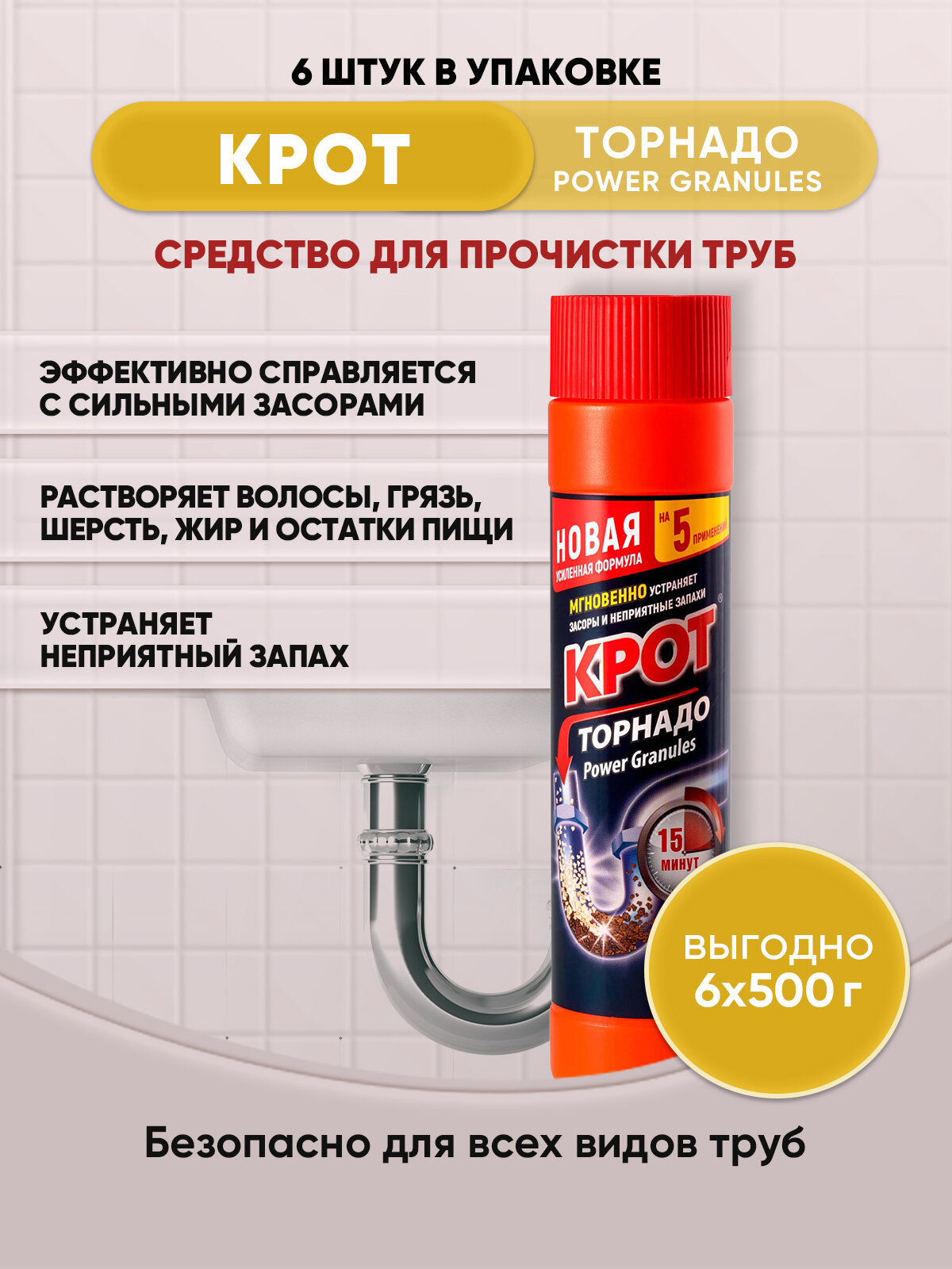Средство для прочистки труб крот торнадо 500 г гранулы