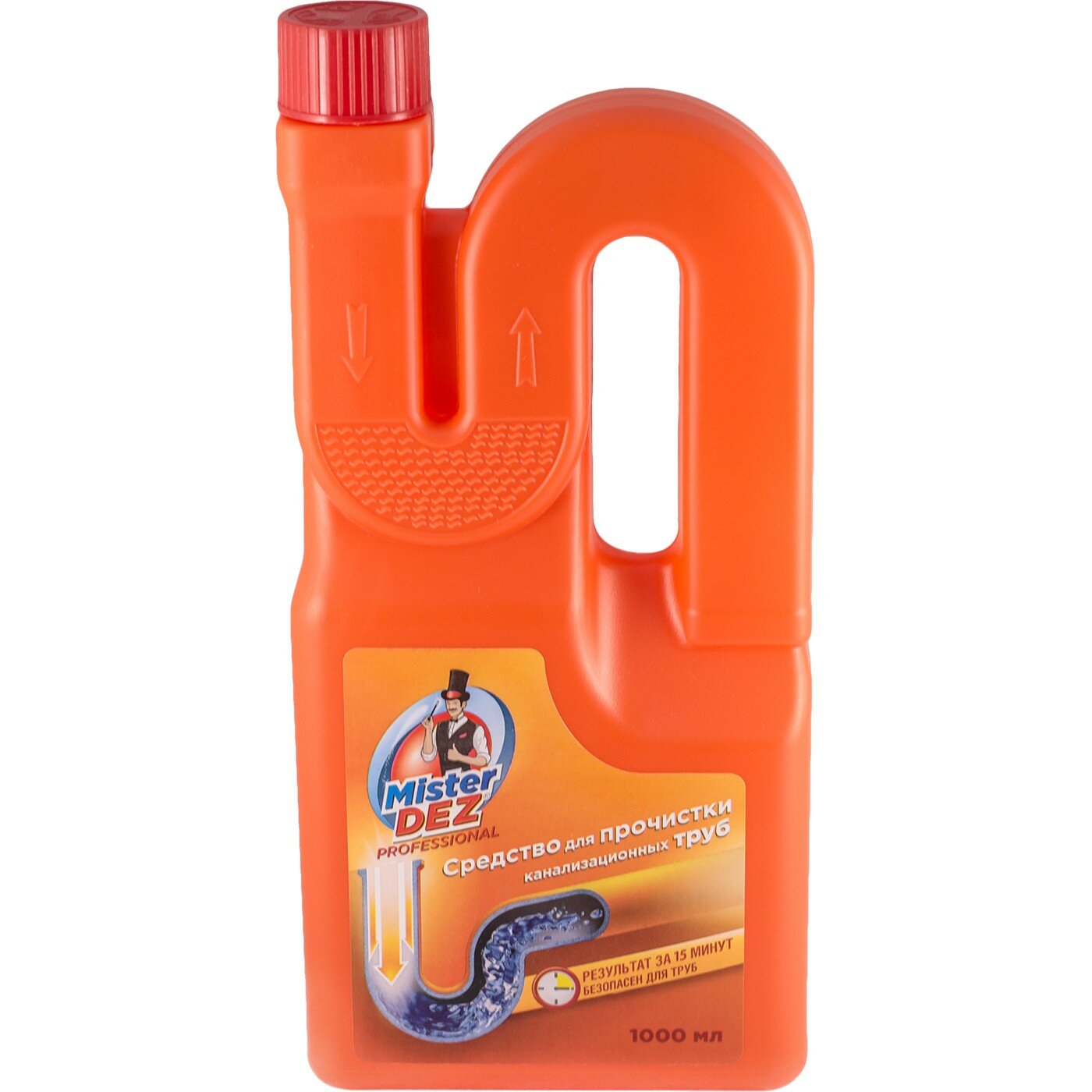 Mister Dez PROFESSIONAL Средство для чистки и прочистки канализационных труб от засоров с дезинфицирующим эффектом, гель, 1000 мл