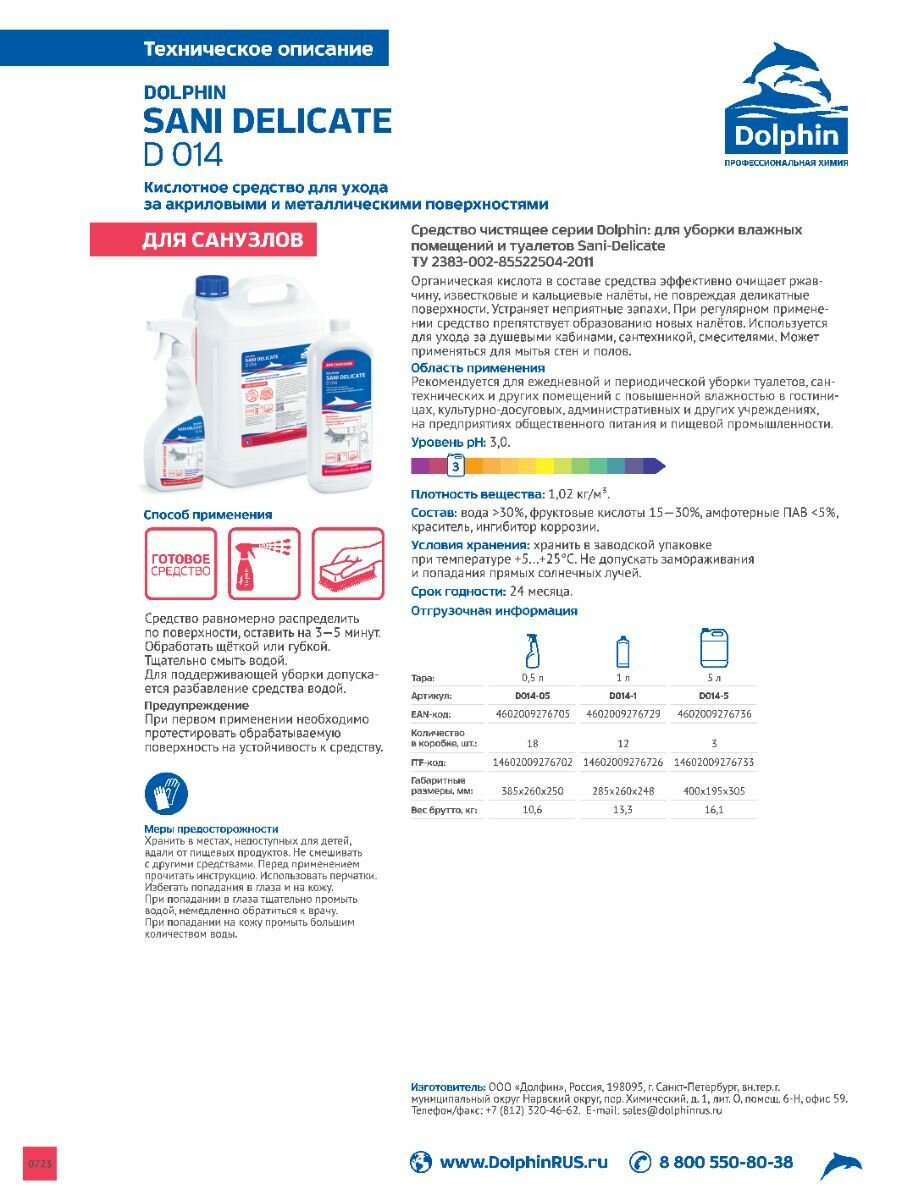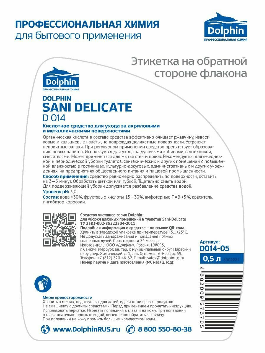 Средство для санузлов для ухода за акриловыми и металлическими поверхностями SANI DELICATE 0,5 литра интересное: