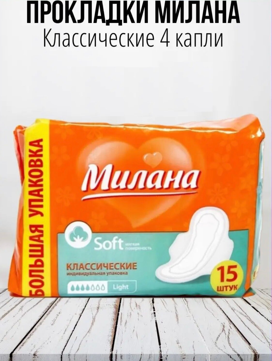 Прокладки гигиенические Милана Classic Normal soft Light 4 капли 6 упаковок по 15шт.