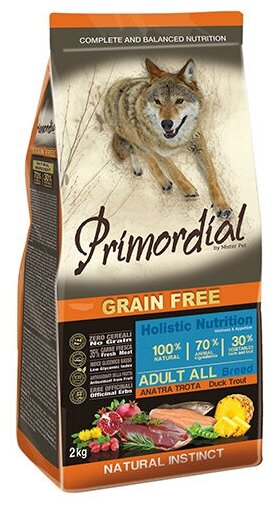 PRIMORDIAL ADULT ALL BREED беззерновой для взрослых собак всех пород с форелью и уткой (2 кг)