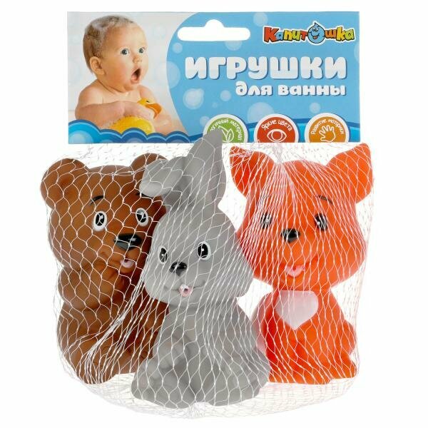 Игрушка пластизоль для ванны заяц, лиса, мишка 3 шт. в сетке