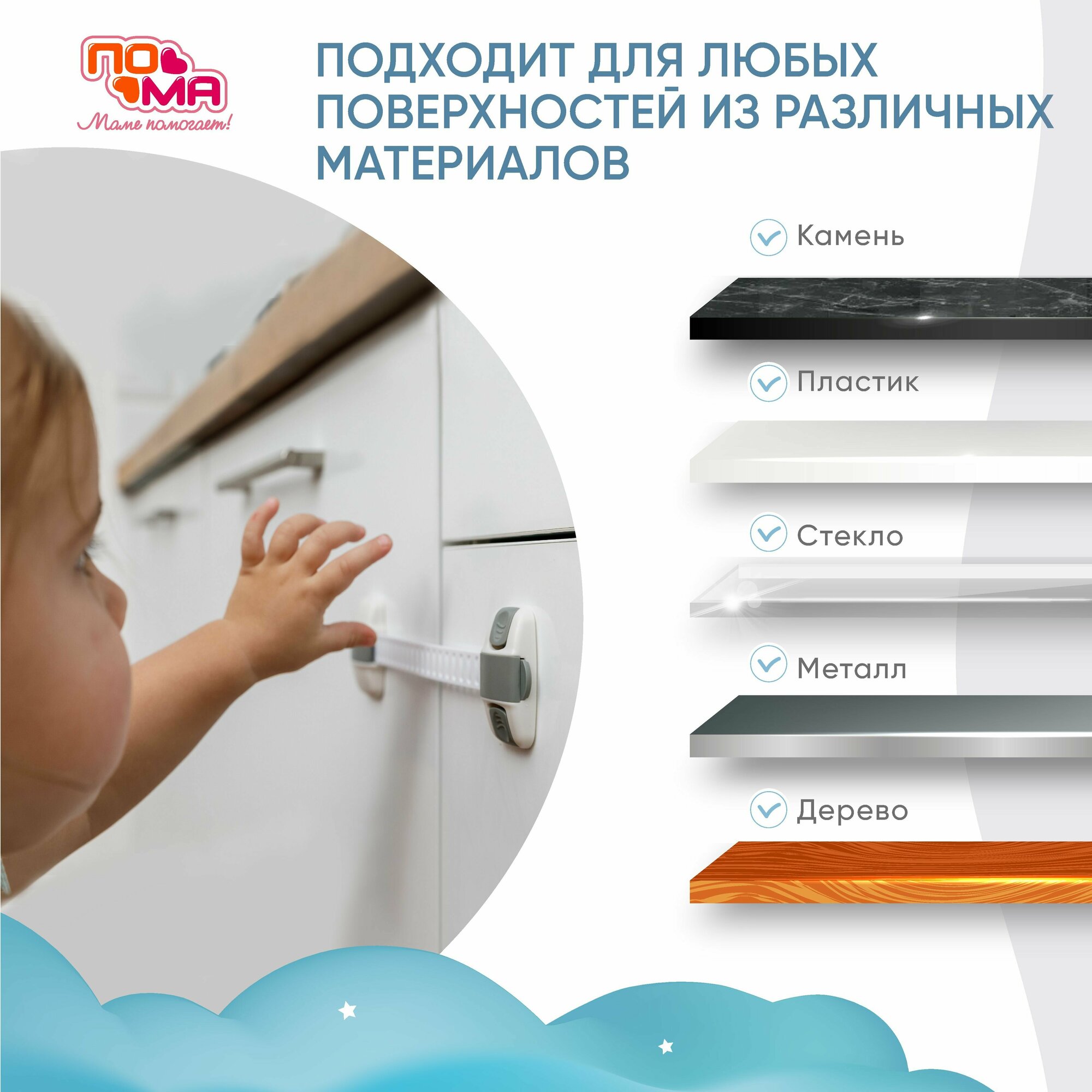 | Отзыв: | Фиксаторы понравились, прикрепили на угол шкафа, пока держится. Дети не сообразили как "это" открывается (2,6 лет и 11 месяцев) |