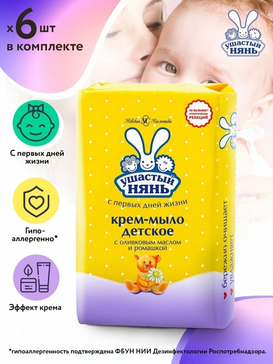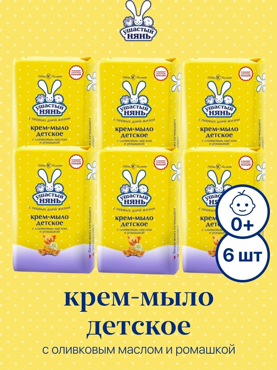 Ушастый нянь крем-мыло с оливковым маслом и экстрактом ромашки 90г набор 6*90г/с первых дней жизни/гипоаллергенное