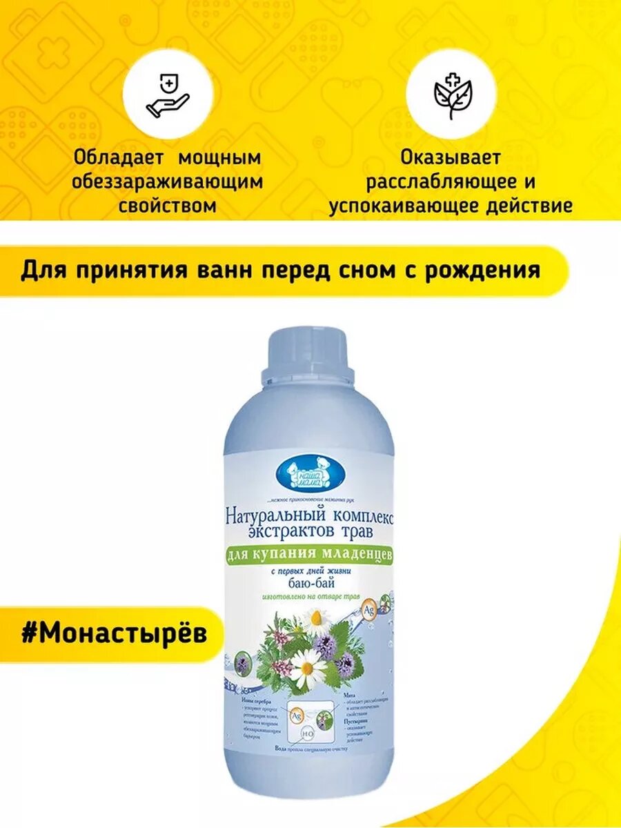 Ниже Вы можете прочитать отзывы на Наша Мама Натуральный комплекс экстрактов трав для купания младенцев "БАЮ-БАЙ" 1000мл, ознакомится с подробными характеристиками, посмотреть интересные обзоры и фотографии на Наша Мама Натуральный комплекс экстрактов трав для купания младенцев "БАЮ-БАЙ" 1000мл.