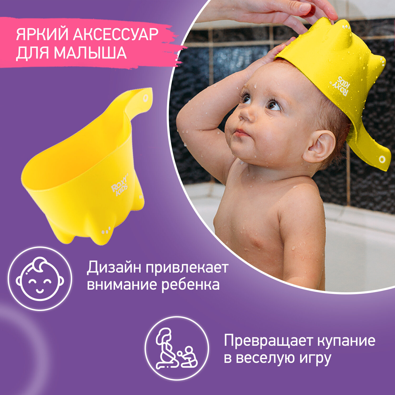 Ковшик для мытья головы ROXY KIDS Roxy-kids Dino Scoop, фиолетовый, RBS-002-V
