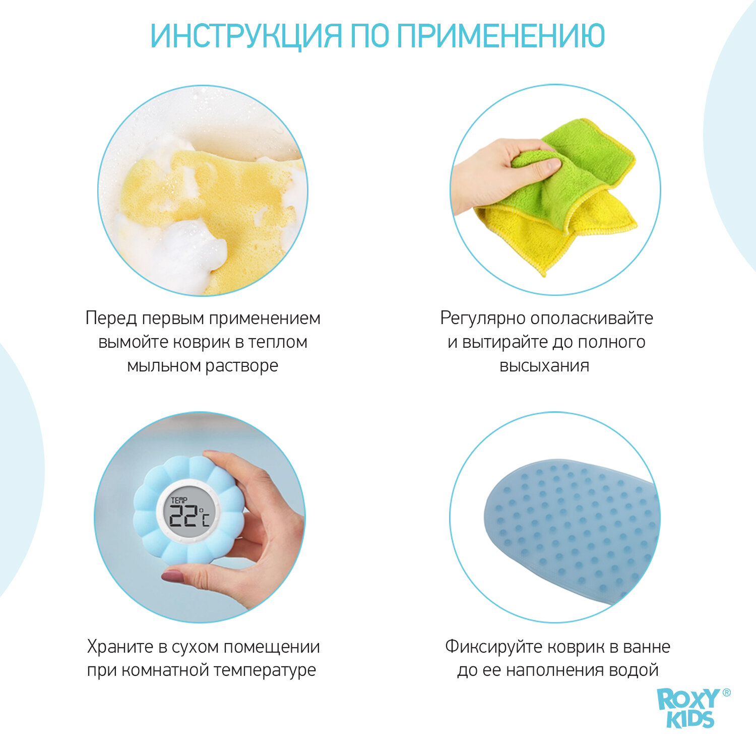 Коврик противоскользящий детский силиконовый для ванночки ROXY-KIDS 42х25 см, цвет голубой