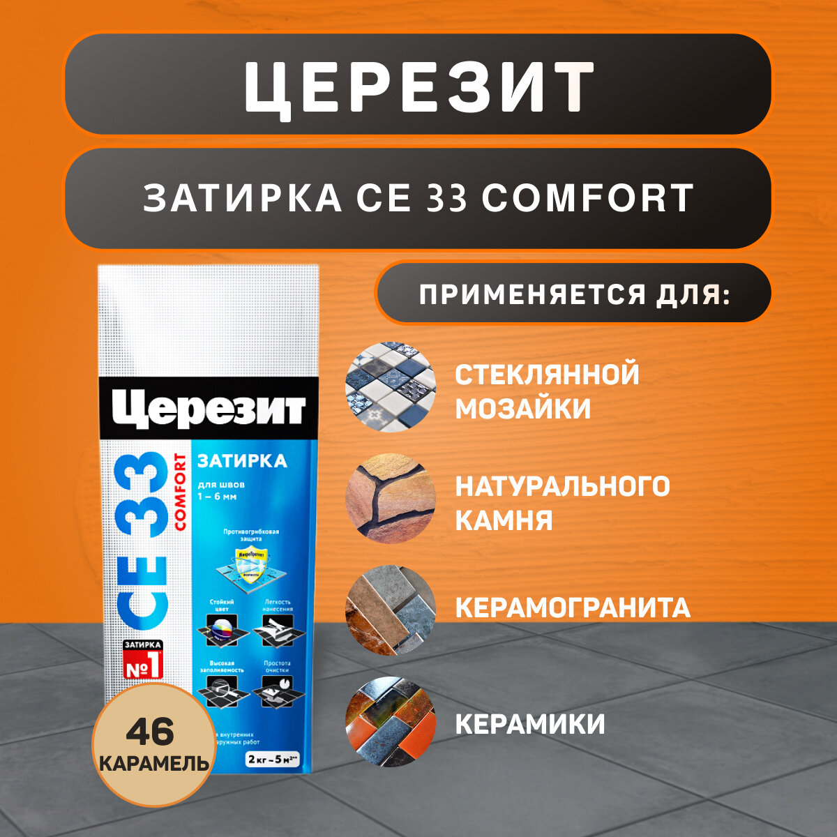 Затирка для плитки Церезит CE 33 Comfort №46 карамель 2 кг