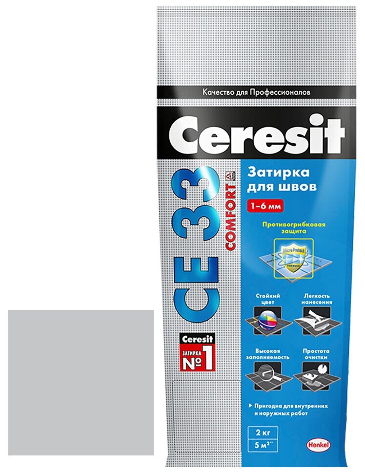 Затирка для плитки Церезит CE 33 Comfort №04 серебристо-серая 2 кг