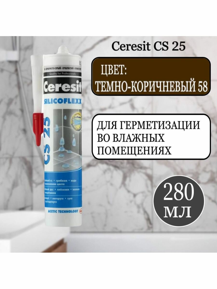 СохранитьГерметик силиконовый затирка Ceresit CS 25 № 58 темно-коричневый 280 мл интересное: