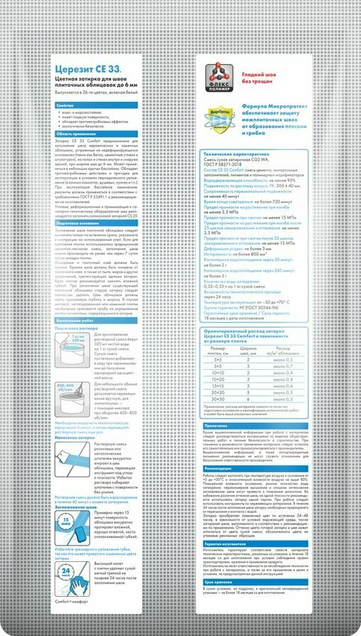 Затирка для швов плиточных облицовок до 6мм Церезит СЕ 33 Белый №01, 5кг