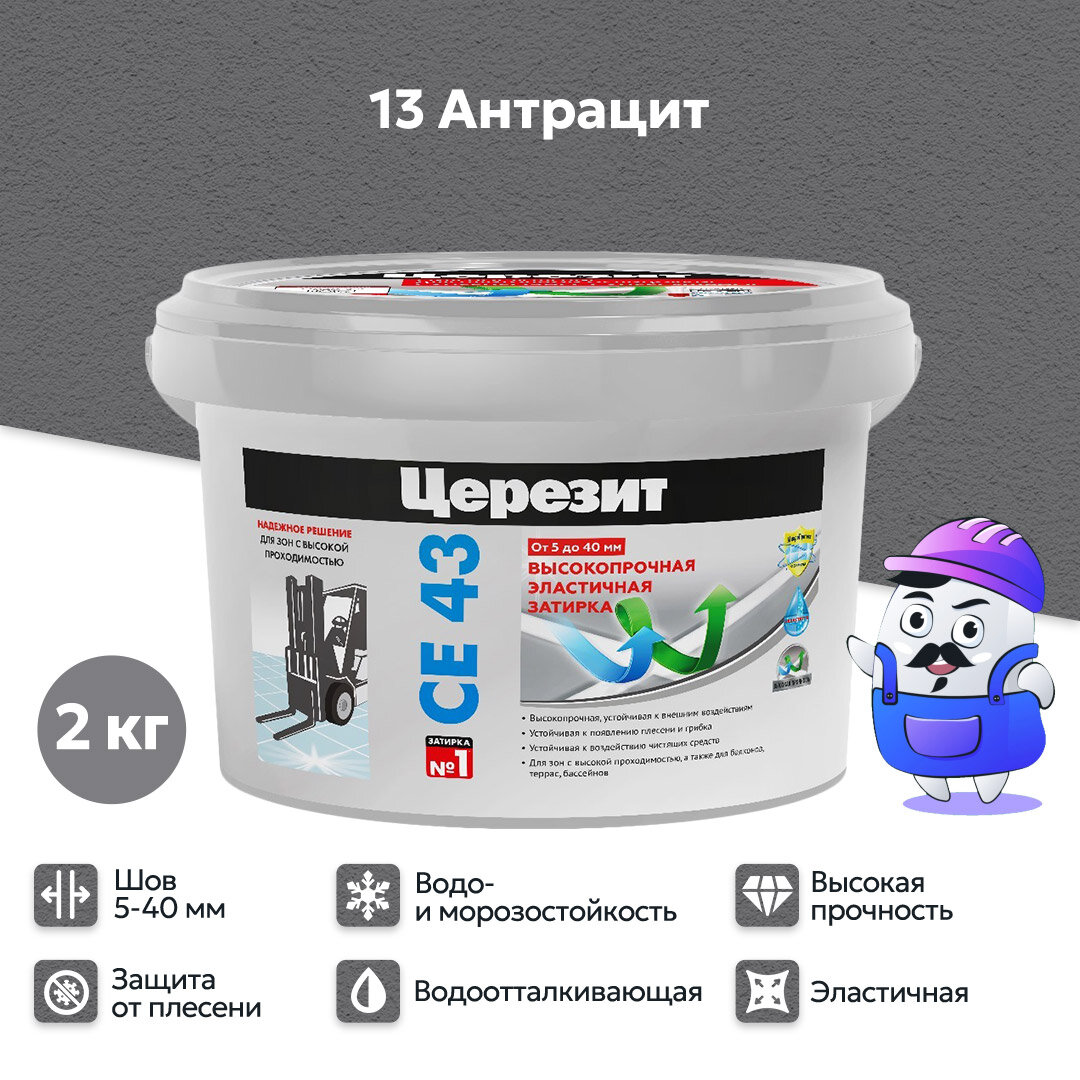 Церезит / CERESIT CE 43, затирка для широких швов, 2 кг, антрацит 13