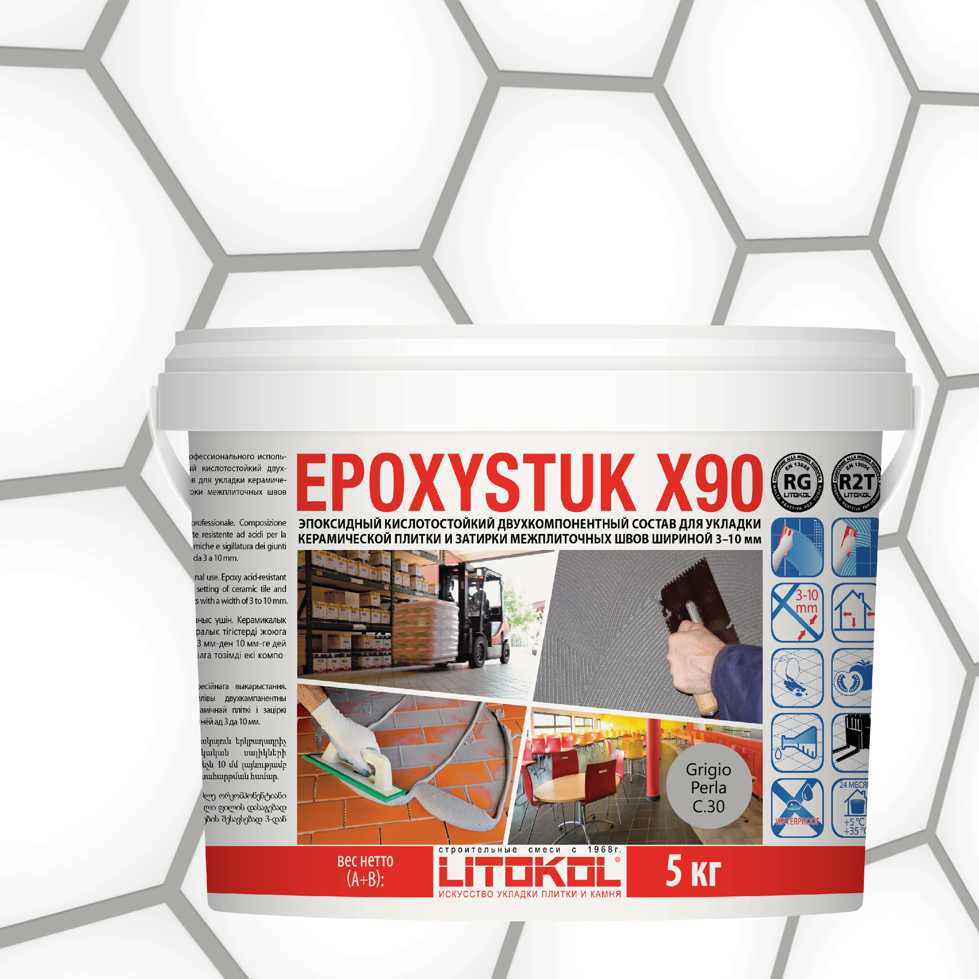 Эпоксидная затирка LITOKOL EPOXYSTUK X90 (литокол эпоксистук Х90) C.30 (жемчужно-серый), 5 кг