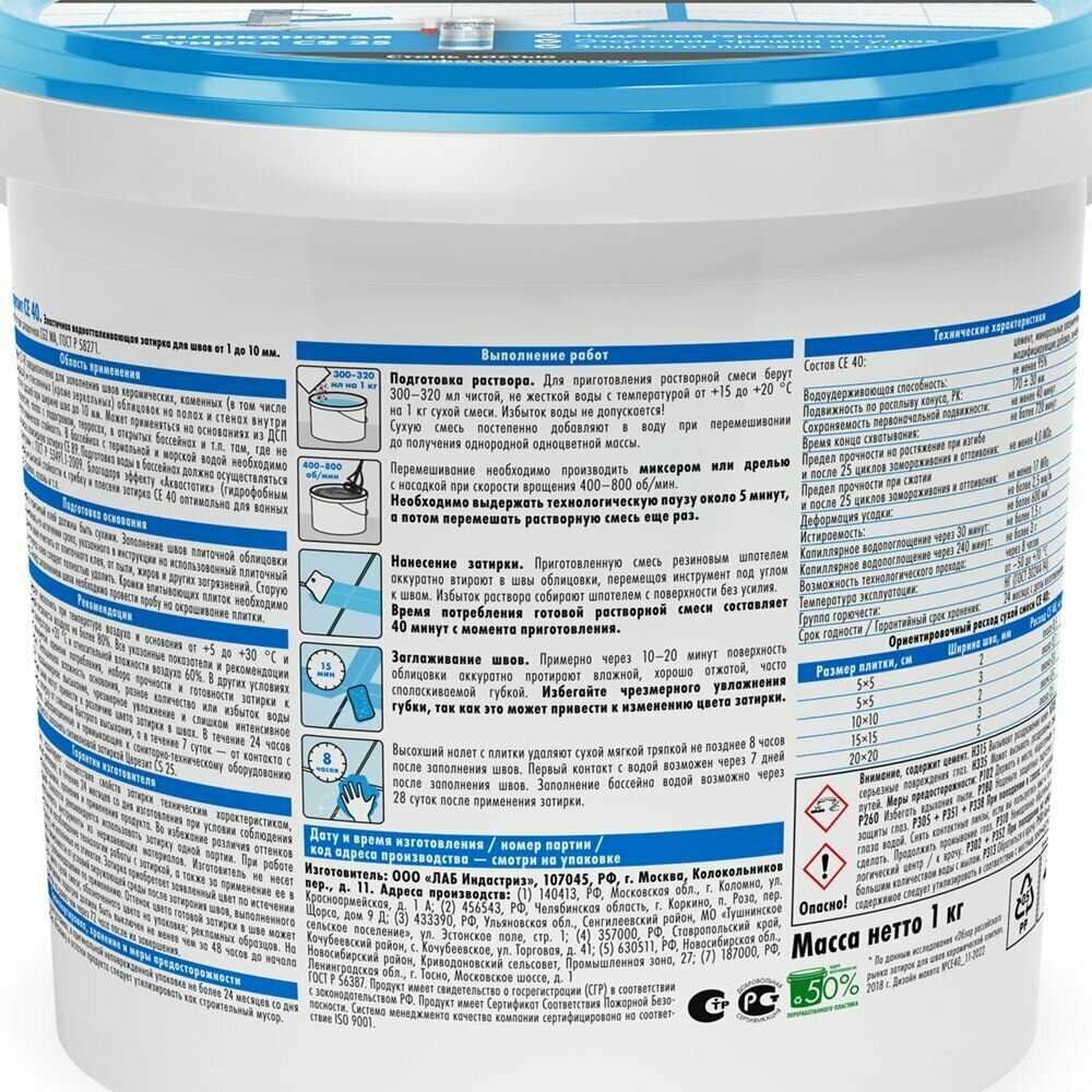 СохранитьЗатирка для швов до 10 мм. водоотталкивающая Ceresit СЕ 40 Aquastatic 01 белая 1 кг. интересное:
