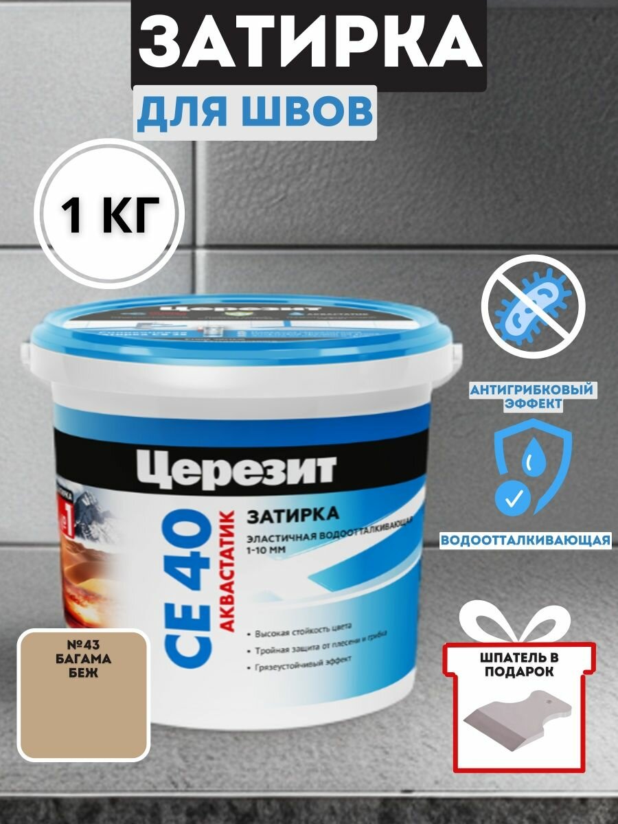 СохранитьЗатирка для швов до 10 мм. водоотталкивающая Ceresit СЕ 40 Aquastatic 43 багама 1 кг. интересное:
