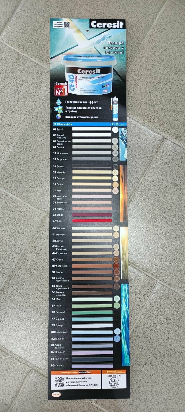 Выбрали цвет графит 16. В итоге получили швы СОВЕРШЕННО другого цвета. Написал производителю думаю может что сделали не так? В ответ получил: « Выбор цвета фуг осуществляйте по образцам материала, размещенных в точках продаж. Наклейка на упаковке с указанием цвета изготавливается печатным способом и дает лишь ориентировочное представление о цвете материала.» Они даже не удосужились разобраться в сути проблемы! Хотя я привел фото образца на фоне банки и фото получившихся швов на фоне той же банки. Честно - не ожидал такого от церезита. Считал его компанией которая следит за тем что выпускает.. или хотябы работает с рекламациями! |